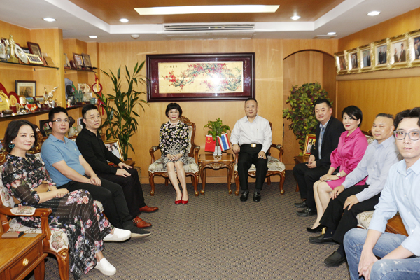 中国侨联青年委员、广东省侨联委员、广东省侨界海外留学归国人员协会常务副会长兼秘书长、广州市森磊文化发展有限公司董事长黄诗琳率领广东省侨界海归协会友好代表团,于2019年2月16日莅临访问泰国华人青年商会,受到李桂雄会长等的欢迎接待。宾主相互恭贺新年诸事顺利,猪年大吉!并就响应、实施“一带一路”,深化泰国与广东侨界海归协会友好关系,推动两地人才创新创业、经贸、知识产权、房产等领域合作,共同参与粤港澳大湾区建设等议题举行交流座谈。座谈会由李嘉淳执行会长主持。