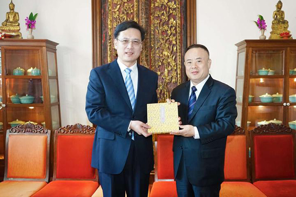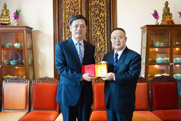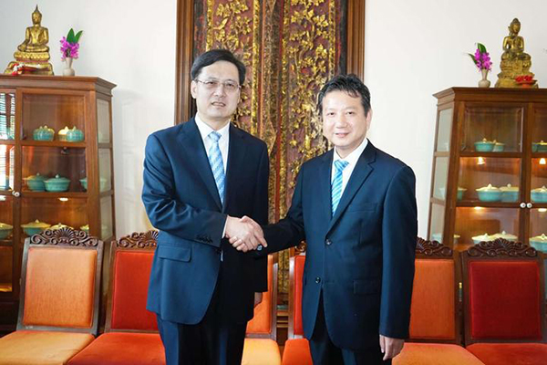 上海市政协副主席李逸平率领代表团于2019年2月22日莅临访问泰国,期间,亲切会见了泰国中华总商会副主席、国际潮青联合会会长、泰国华人青年商会会长李桂雄,全国青联常委、上海市青联常委、泰国华人青年商会副会长、泰中文化交流中心主任赵春森等,并就响应、实施“一带一路”倡议,深化泰国与上海两地友好关系,促进经贸合作与文化交流,特别是在新时期推动两地企业家在科技创新、新兴行业等方面进行了探讨与交流。