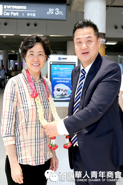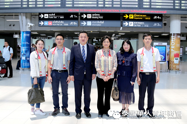 广东省委统战部副部长、省侨办主任庞国梅率领友好代表团于4月23日上午抵达泰国曼谷,开始为期两天的访问。受到泰国华人青年商会执行会长李嘉淳、会长助理许少玉、副秘书长黄湛声等的热烈欢迎。访问团成员有: 广东省侨办处长吴晓生、广东省侨办副处长陈金流、广东省侨办主任科员赵芹等。期间,庞国梅主任一行将访问有关侨社,召开华侨华人座谈交流会,宣介粤港澳大湾区发展规划,听取旅泰侨胞对粤港澳大湾区发展的建议意见等。