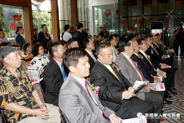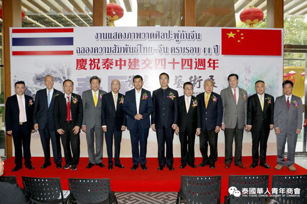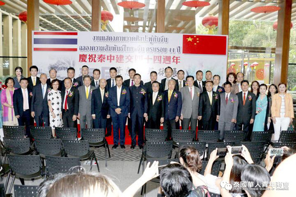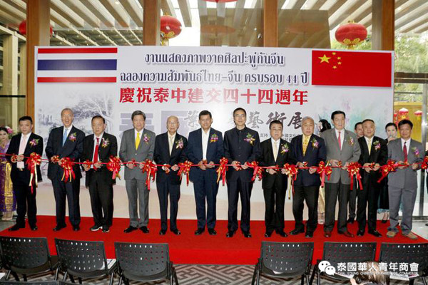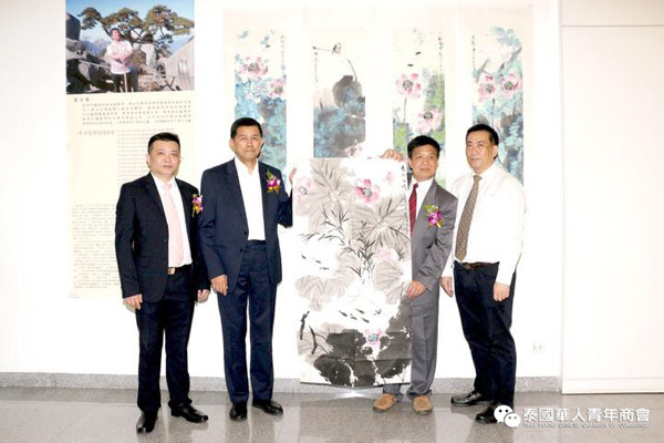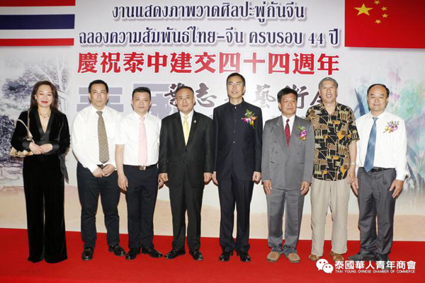 泰中友好协会会长(泰国前副总理)功•塔帕朗西、曼谷中国文化中心顾洪兴主任、泰国中华总商会主席陈振治博士、泰国潮州会馆主席黄迨光博士、泰国中华总商会暨各行业公会联谊会林楚钦执行主任,泰国最高法院前副院长黄其国资深大法官、泰国中国和平统一促进总会会长王志民博士,泰中艺术家联合会蔡义批会长,泰华进出口商会林齐锐理事长,泰国华人青年商会李桂雄会长,泰星盛集团有限公司董事长庄基锋先生等泰华各界知名人士参加,并主持剪彩开幕仪式。