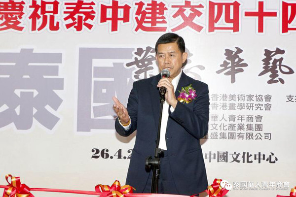 艺术展上,泰中友好协会会长(泰国国务院前副总理)功·塔帕朗西阁下、曼谷中国文化中心顾洪兴主任、香港美术家协会主席叶志华先生分别致辞。