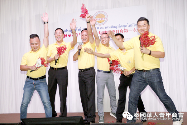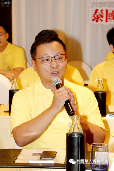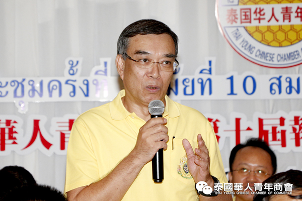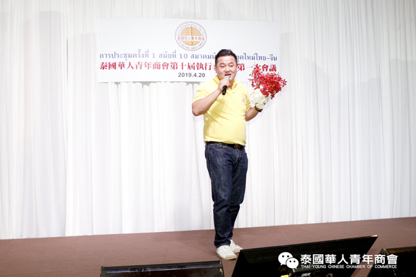 习近平主席提出的“一带一路”倡议,对中国创新驱动发展,全球经济协同发展产生了重大影响,也让泰国及东盟地区国家受惠,让我们共享“一带一路”和创新发展的成果。泰国政府推出“工业4.0”与东部经济走廊(EEC)政策,与中国“一带一路”、京津冀协同发展、泛珠三角洲地区,粤港澳大湾区对接合作,商机无限。我们要一如既往的支持、参与祖国和家乡的建设,每位商会兄弟姐妹都要把握好自己的方向,在新的时期拓展自己的事业,不忘初心,牢记使命,秉承我们的创会宗旨和精神,尊老敬贤,学习老一辈刻苦耐劳、努力奋斗创业的精神,弘扬中华传统文化,维护泰中友好,推动泰中经贸合作和文化交流,继续做出我们的努力和贡献。我们要有新的担当,新的作为,更要有道德,有胸怀,和谐与包容,互相帮助,学好本领,当好新时代商界精英,说实话,讲良心,做好人,共同续写青年商会的新篇章,为共建泰华青商会命运共同体而努力奋斗,为泰中两国的繁荣昌盛做出新的、更大的贡献。