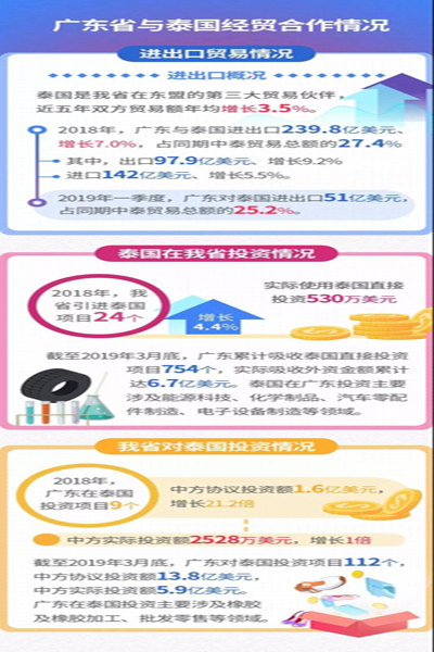 6月11日,由广东省商务厅、泰国中华总商会、泰国华人青年商会共同承办的2019中国(广东)—泰国经贸合作交流会在泰国首都曼谷举办。