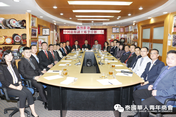 中国全国政协常委、中国侨联副主席李卓彬率领代表团,于2019年6月25日下午访问泰国华人青年商会,受到李桂雄会长等的热烈欢迎和接待。代表团成员有:中国侨联经济科技部巡视员、中国侨商会副会长兼秘书长安晨,中国侨联经济科技部经济处处长尹媛媛,中国侨联联谊联络部亚洲处主任科员郑慧,中国侨联办公厅秘书处主任科员张明磊等。双方就深化泰中友谊、弘扬中华优秀传统文化、广泛团结凝聚海内外侨胞,促进华侨华人响应“一带一路”建设,推动侨商共同支持、参与祖国与家乡的新一轮改革开放与经济建设等方面进行了交流与座谈。