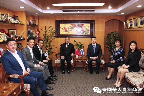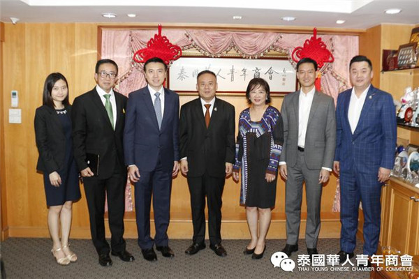 6月27日上午,泰国华人青年商会会长李桂雄在青商会会议室欢迎会见了来访的泰国开泰银行执行副总裁郑卓文(Suwat Techawatanawana)先生、私人银行高级顾问林刘兆仪(Patcharin Vongsiridej)女士、高级副总裁蔡伟才先生、私人银行主管Thanavat Bhucharoen先生、私人银行客服经理杨爱洁女士一行,李嘉淳执行会长参加会见。