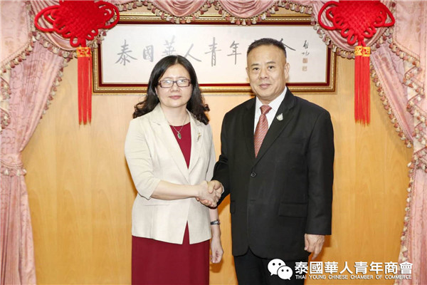 广东省潮州市人大常委会陈史青副主任率领友好代表团,于2019年6月29日莅访泰国华人青年商会,受到李桂雄会长等的热烈欢迎。代表团成员还有:市委副秘书长陈绍文、市外事局副局长王礼民、市文化广电旅游体育局副局长黄奕湘、市外事局科长潘桂芬等。