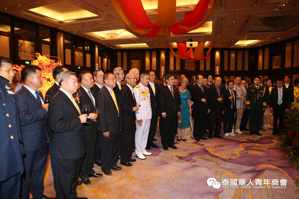 中国驻泰国大使吕健和使馆全体外交官,泰国副总理阿努廷、泰陆军司令阿披叻上将、海军司令乐猜上将、空军司令猜亚普上将等泰军高级将领,以及驻泰使团、武官团、泰国各界人士、驻泰中资机构、华人华侨及留学生代表等700余人出席招待会。
