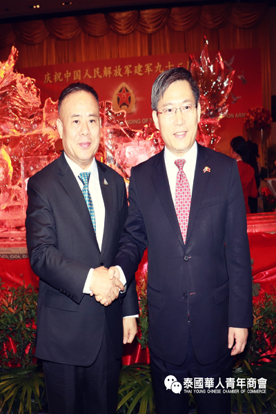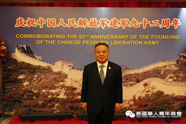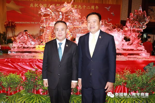 7月26日晚,中国驻泰国大使馆在曼谷香格里拉酒店举行招待会,庆祝中国人民解放军建军92周年。