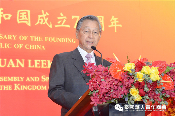 泰国国会主席兼下议院议长川·立派代表泰国议会热烈祝贺中华人民共和国成立70周年,表示中国70年的发展成就已然超越历史任何时期。他表示,当今中国经济体量庞大,科技发展日新月异,同世界的合作日益广阔,泰中关系也保持健康发展,两国合作涵盖各个领域。