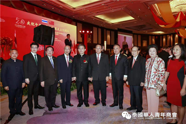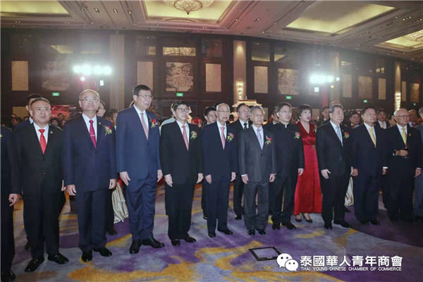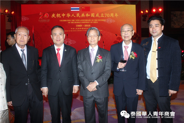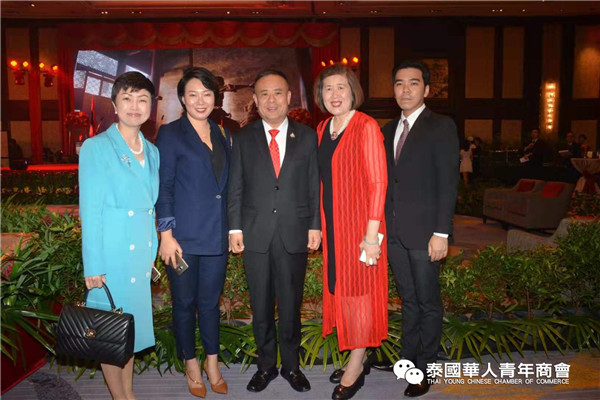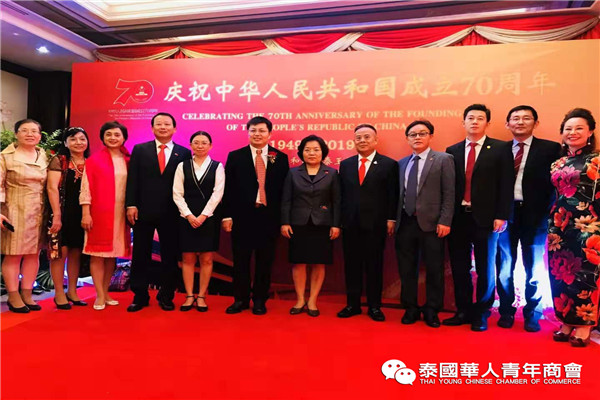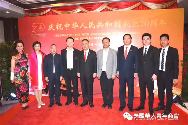 泰国华人青年商会会长李桂雄、副会长谢崇通、黄志乾、李大成、杨艳峰,执委岳群、白斯琴高娃、李胜挺等应邀参加庆祝活动,共同祝福泰中友谊万古长青,泰中两国繁荣富强、人民幸福安康。