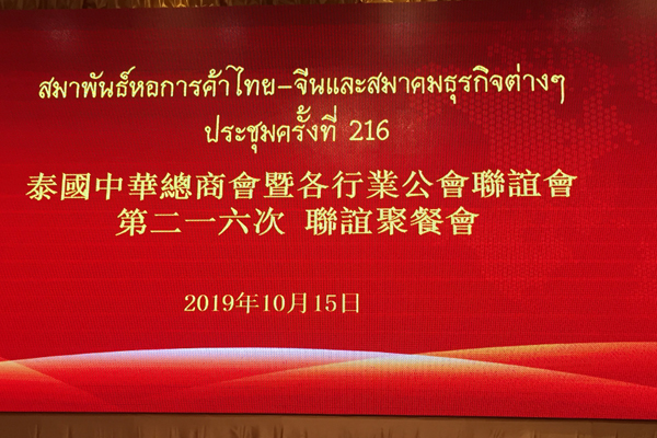 泰国中华总商会暨各行业公会联谊会第二一六次聚餐联谊会于公元二零一九年十月十五日(星期二)中午十一时卅分假泰国中华总商会光华堂举行。