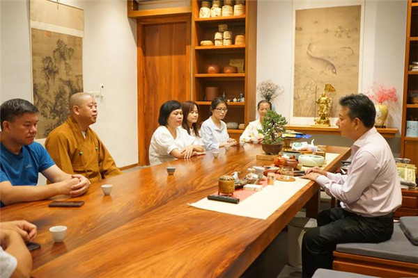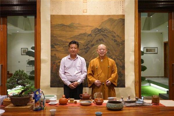 在赵春森先生的府上,纯一法师和赵春森一起交流心得,共叙法谊。纯一法师回顾了赵春森先生二十余年来经常亲近其恩师一诚长老的历程,赞扬赵春森对于禅文化的普及、弘扬与提升有较深的体悟。两位一起品茗用膳,法喜悠然。