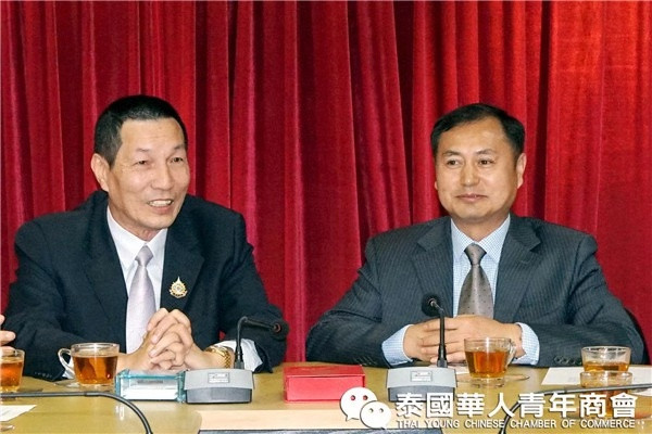 牛海堂部长感谢青商会的热情接待。他说,今天来到泰国华人青年商会,切身的感受到青商会长期以来为中泰友好合作方面所做努力与贡献。感谢商会同仁长期以来积极参与祖国河南的经济建设,特别是对河南籍侨胞乡亲在泰发展的大力支持与帮助。随后,牛部长介绍了河南的发展近况,他说,河南省位于中原地区,地理位置优势明显,又是人口、文化、旅游、农业大省,市场潜力巨大,发展趋势很好,借此机会希望与青商会加强联系,也诚挚得邀请青商会同仁到具有深厚文化历史底蕴的河南旅游访问,共商合作,共同参与河南新一轮的建设与发展。