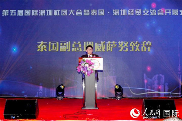 威萨科努·科安致辞时表示,中国改革开放以来,深圳取得的巨大成就举世瞩目,宝贵经验值得泰国借鉴学习。深圳和曼谷是友好交流城市,长期以来联系紧密。值中华人民共和国成立70周年和中泰建交44周年之际,第五届国际深圳社团大会在曼谷举行,将进一步密切两市交流,深化彼此合作。泰国政府欢迎中国、深圳的企业家来泰国投资,充分享受泰国的相关政策。同时,泰国政府将为来泰囯投资的企业创造良好条件和提供鼎力支持。