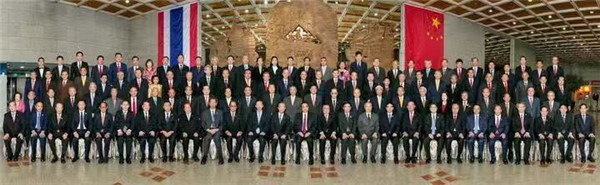 访团成员有:国务院委员兼国务院秘书长肖捷、工业和信息化部部长苗圩、 财政部部长刘昆、国家广播电视总局局长聂辰席、国家发展与改革委员会副主任张勇、外交部副部长乐玉成、驻泰国大使吕健、驻东盟大使黄溪连,商务部副部长国际贸易谈判副代表俞建华、李克强总理办公室主任石刚、外交部部长助理陈晓东、泰国驻中国大使阿塔育 •习萨目。