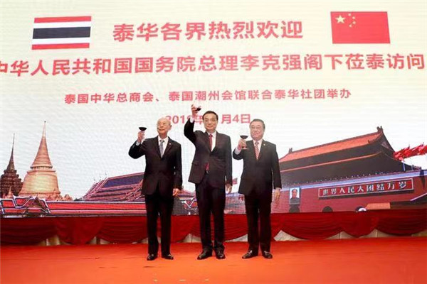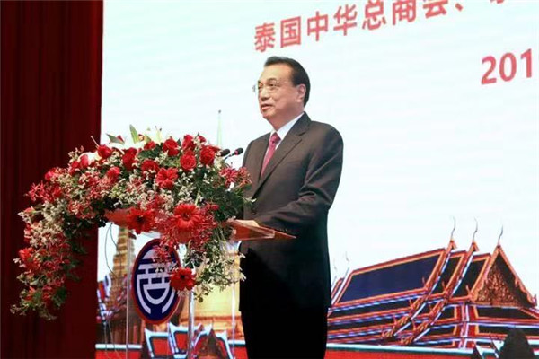 中华人民共和国国务院总理李克强致辞:泰国中华总商会主席陈振治先生,泰国潮州会馆主席黄迨光先生,女士们,先生们,朋友们:我很高兴六年之后重返故地,六年前访问泰国社团的时候,也是在这里,泰国中华总商会,泰国潮州会馆上百个泰国华侨,华人的团体为我举办了欢迎宴会。今天我们看到当年的大厅装修一新,正是体现了“苟日新,日日新”的风景。这表明六年来,在泰国的华侨华人,你们的努力,又迎来了新的荣光,我感谢你们的热情接待,并通过你们向中国在泰国工作、生活的华侨华人表示诚挚的祝愿。祝大家家庭幸福,工作顺利。
