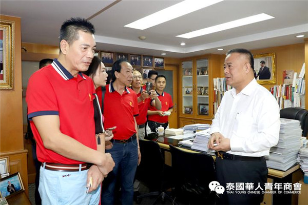 泰国华人青年商会执行会长李嘉淳,常务副会长邝锦荣、黄懿光,副会长黄志乾,会长助理胡坚毅、许俊龙,副秘书长黄湛声、刘少毅,执委梁晓彤、赵子杰,总干事黄成等参加欢迎座谈会。