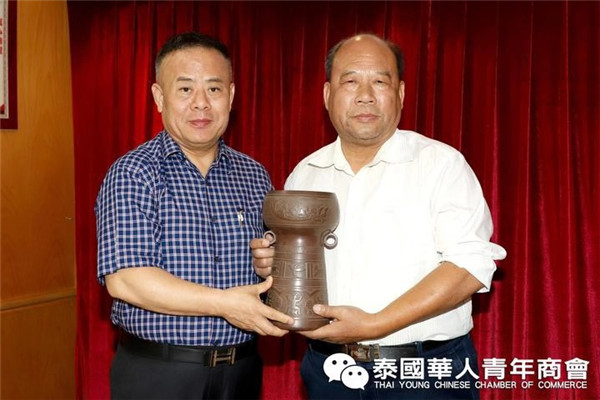 2019年12月12日下午,广西钦州市坭兴陶行业协会理事长利成世率领广西坭兴陶产业人才小高地陶瓷专家、行业大师来访泰国华人青年商会,受到了李桂雄会长、黄志乾副会长,会长助理黎孔林、刘汉政,黄成总干事等的热情接待。并就在新时期推动泰中及广西文化艺术交流、弘扬中华优秀传统文化等进行了友好交流与座谈。