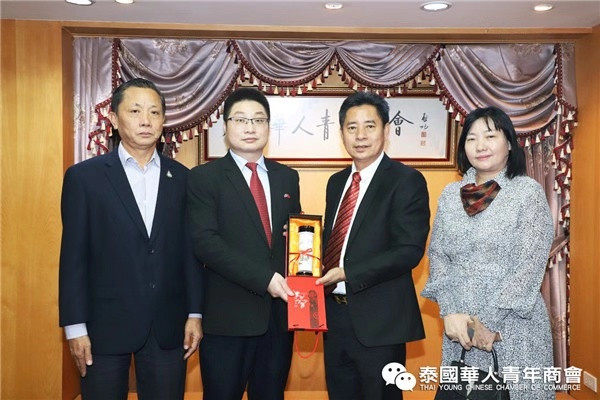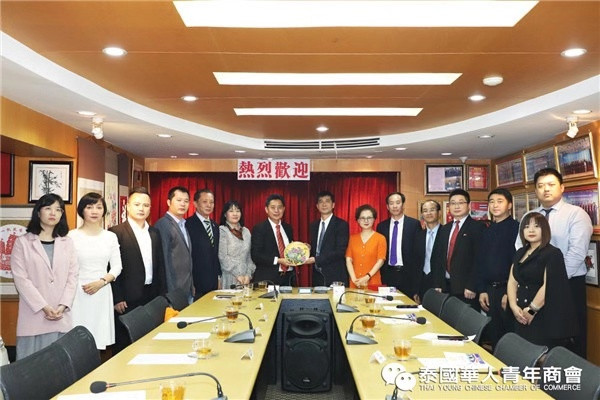 鹰潭市人大常委会主任郭清率领代表团,于2019年12月18日下午访问泰国华人青年商会,受到常务副会长林兆祥、会长助理许少玉、许俊龙、郑桂涛,康乐主任李.鹏,执委曾淇,泰中江西总商会副会长杨莉、朱红英、钟佳成等的热情欢迎与接待。代表团成员还有:鹰潭市人大常委会秘书长魏建君,市人民政府外事办公室主任谢雯,月湖区人大常委会主任朱淑英,龙虎山景区党委书记雷纪文,市政府办公室调研员、龙虎山旅游文化发展有限公司执行总经理等。