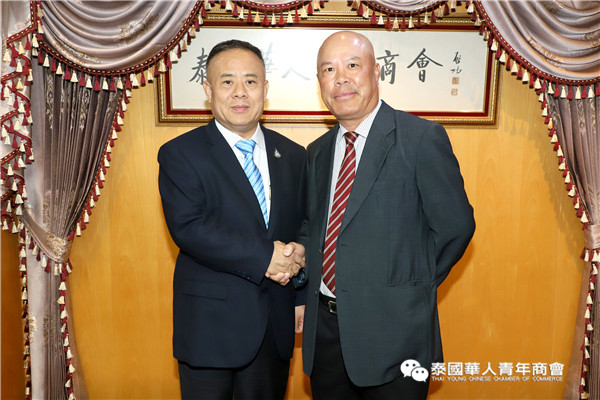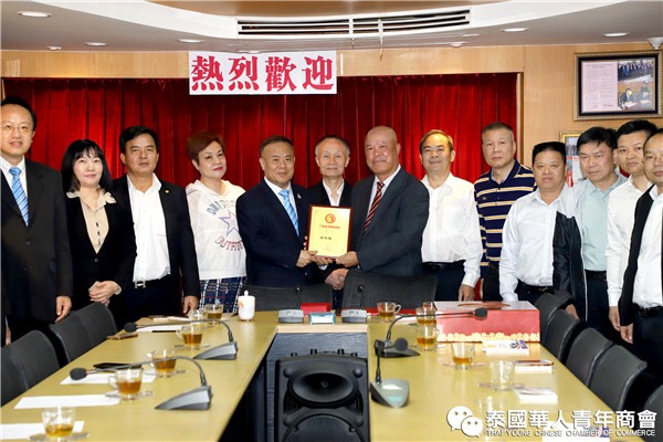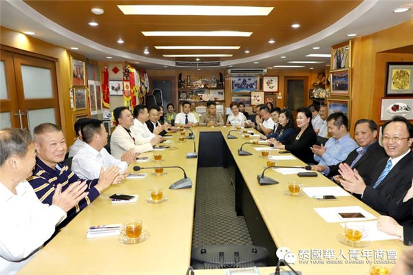 广东省人大代表、广东省流通业商会会长陈建华率领商务考察团于2019年12月13日下午访问泰国华人青年商会,受到李桂雄会长等的热情接待,双方就新时期响应“一带一路”倡议,积极参与粤港澳大湾区建设,深化两会友谊,推动泰中及广东的友好及各领域合作等方面举行了交流座谈会。