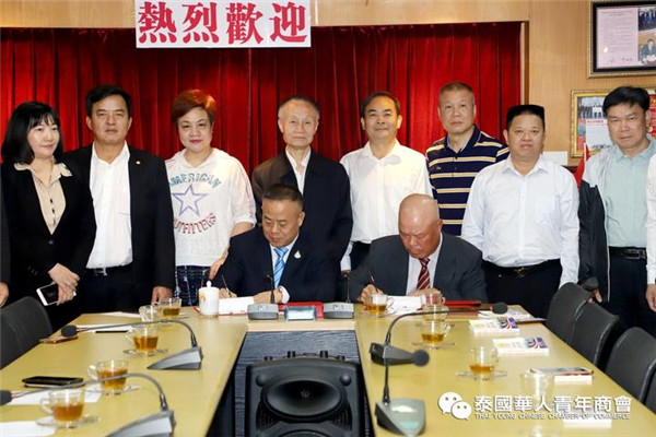 为深化两会友谊,实现两会企业家资源共享,携手发展,建立两会网络服务平台,在两会同仁的共同见证下,李桂雄会长和陈建华会长代表泰国华人青年商会与广东省流通业商会共同签署了《友好合作协议书》。