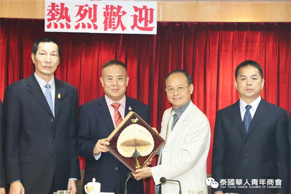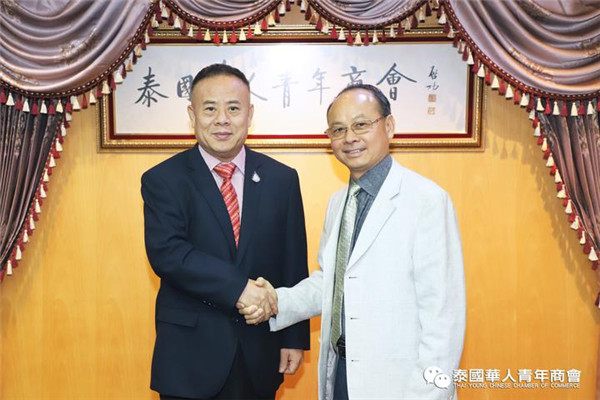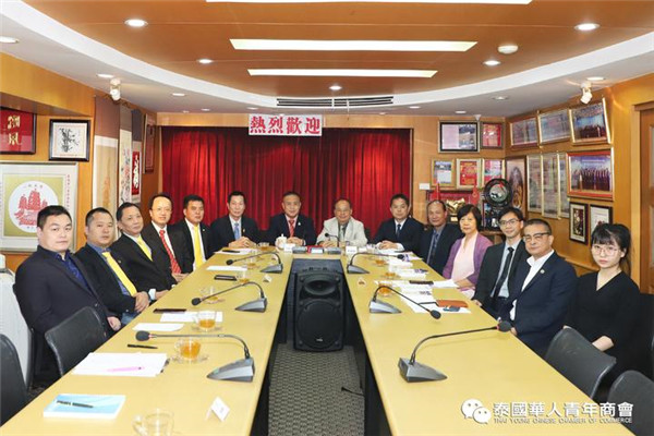 送旧迎新年,2019年12月31日下午,泰国华人青年商会会长李桂雄在青商会欢迎、会见了来访的江门市政协马跃敏副主席及代表团一行。代表团成员有:江门市委外办副主任赵英林,市政协办公室副调研员梁显帮,江门五邑海外联谊会副理事长吴霖,市政协办公室秘书科科长、市公共外交协会秘书长黄达华等。