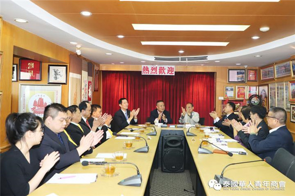 李桂雄会长对马跃敏副主席一行的来访表示热烈的欢迎,并请转达向江门市各位领导和乡亲们的新年祝福。随后,简要介绍了青商会的发展近况及与江门的友好历程。李会长说,江门是著名的侨乡,自己曾多次到江门参加活动,江门的华侨文化、碉楼文化独一无二,中车公司世界瞩目。近年来江门经济、社会发展迅速,泰国与江门的交流合作逐步扩大、关系日益紧密,目前正值泰中友好合作的高峰期,马跃敏副主席一行此次响应“一带一路”来泰,与华侨华人共享江门创新发展的成果,搭建了泰国与江门在旅游、经贸等领域交流合作的新平台,对两地的多领域务实合作将发挥重要的作用。青商会将以此为契机,继续推动泰国的侨胞、企业家共同参与江门和“粤港澳大湾区”的建设,为两地企业对接合作牵线搭桥。