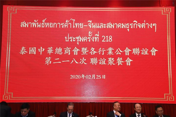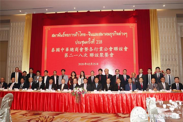 泰国中华总商会暨各行业公会联谊会第218次联谊聚餐会,于2020年2月25日(星期二)中午十一时卅分,在泰国中华总商会九楼光华堂(อาคารไทยซีซี ชั้น 9ถนนสาทรใต้ กรุงเทพฯ)举行。此次联谊聚餐会是泰国中华总商会新第27届会董会成立就职后第一次会议。