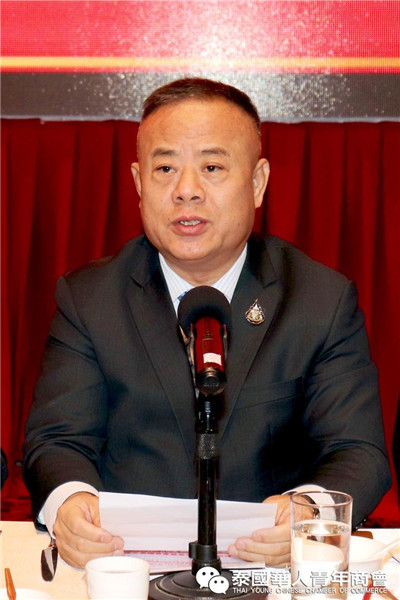 泰国华人青年商会会长、泰国中华总商会副主席兼各行业公会联谊会执行主任李桂雄主持会议并致词
