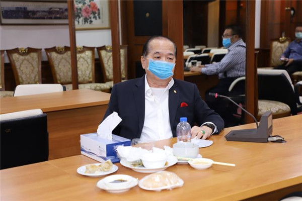 林主席指出:泰國政府實施緊急狀態應急措施,以控制疫情,在此特殊情況下,各行各業均受到嚴重衝擊,百業俱損,多行停業,經濟面臨嚴峻考驗,人民的日常生活深受困擾,公司企業停工停產,工人失業,貧困家庭處於水深火熱之中,給大家造成相當大的壓力。林主席呼籲諸位會董,要發揚大愛精神,慈悲為懷,極盡全力幫助下屬企业員工,解其燃眉之急,以減少社會壓力,減轻政府負擔。這也是為社會、為國家貢獻力量的具體表現。