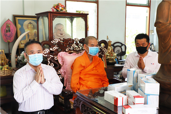 พระมหาคณาจารย์จีนธรรมสมาธิวัตร(เย็นเต็ก) เจ้าคณะใหญ่คณะสงฆ์จีนนิกายแห่งประเทศไทยและเจ้าอาวาสวัดโพธิ์แมนคุณาราม สมเด็จพระมหารัชมงคลมุนี (เจ้าคุณธงชัย) ผู้ช่วยเจ้าอาวาสวัดไตรมิตรวิทยารามวรวิหาร และพระอาจารย์จีนคณาณัติจีนพรต (เย็นงี้) เจ้าอาวาสวัดมังกรกมลาวาสอนุญาตให้นายบุญยงค์ ยงเจริญรัฐ และนายชุน ไพลีนดีเลิศเป็นตัวแทนสมาคมนักธุรกิจยุคใหม่ไทย-จีนเข้าพบเพื่อถวายอุปกรณ์ป้องกันโรค