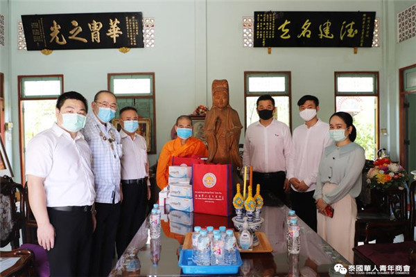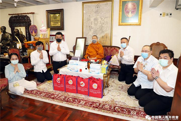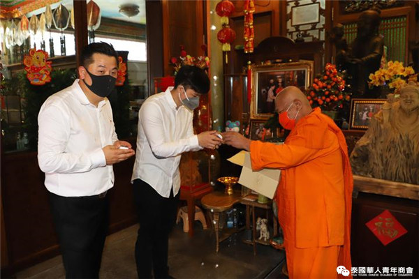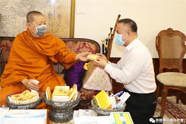 李桂雄会长表示,佛教作为泰国的国教,已经深深的融入广大人民的生活习俗和思想意识当中,是人民的精神支柱。在这特殊时期,佛教界密切关注疫情进展,心系受难民众,为防止疫情蔓延,不仅积极采取防疫措施,还为民众虔诚诵经祈福,安定民心,传播正能量,令我们广大华侨华人倍感安心。我代表泰国华人青年商会和旅泰新侨民感谢三位华宗大尊长长期以来的关心与支持。祝愿泰国人民早日脱离疫情之苦。泰国华人青年商会副秘书长陈世岳、刘少毅,执委黄蕊、马兴海等参加捐赠活动。