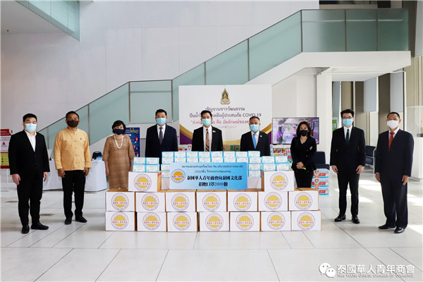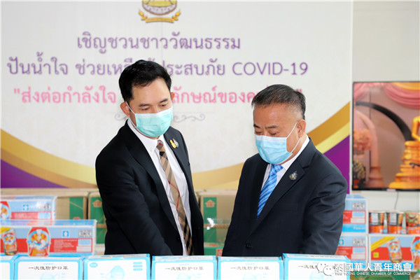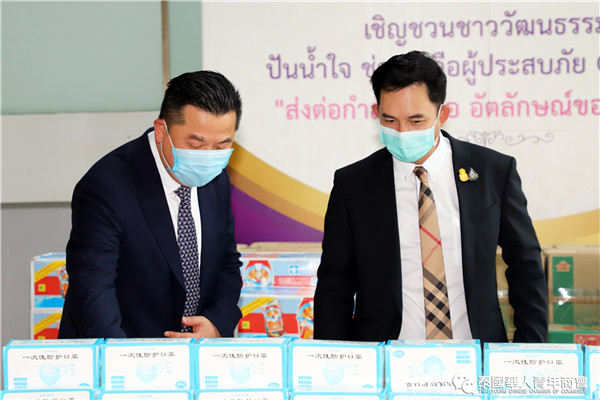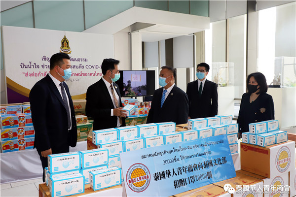 นายอิทธิพล คุณปลื้ม รัฐมนตรีว่าการกระทรวงวัฒนธรรม รับมอบหน้ากากอนามัย จำนวน ๒๐,๐๐๐ ชิ้น จากนายบุญยงค์ ยงเจริญรัฐ นายกสมาคมนักธุรกิจยุคใหม่ ไทย-จีน