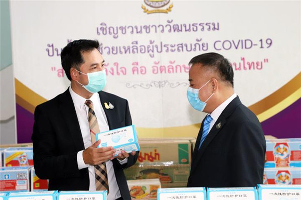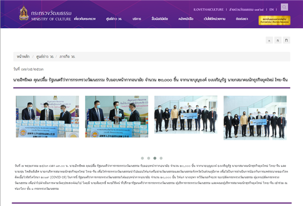 目前,泰国正处于疫情防控的重要时期,虽然近日来疫情有所缓解,但随着部分场所逐步开放,泰国的防疫工作面临新的挑战。2020年5月7日,泰国华人青年商会会长李桂雄、执行会长李嘉淳等代表商会向泰国文化部捐赠20000个医用口罩,泰国文化部部长伊提篷·坤本先生、常务副次长育帕·他威哇塔那吉波旺女士、部长顾问颂立·蓬威拉先生等亲自接领。