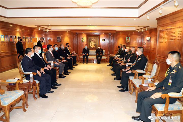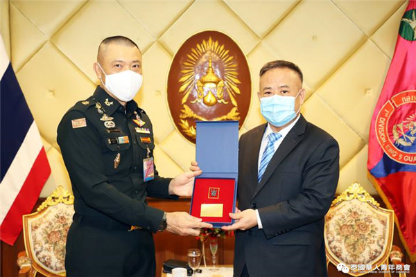 上午8时,李桂雄会长一行首先抵达泰国陆军防空指挥部,受到了总指挥攀罗·芬福中将等的热烈欢迎,攀罗陆军中将表示,泰国华侨华人和华商社团为泰中两国的友好合作搭建了重要的桥梁,为泰国的繁荣进步作出了贡献,无论泰国遇到任何困难,侨商都坚定的站出来支持、援助,今天非常感谢李桂雄会长带领泰国华人青年商会成员在新冠疫情的特殊时期来看望我们,为我们送来了爱心防护物资,令我们信心倍增,也深化了我们的友谊,祝愿疫情早日结束。