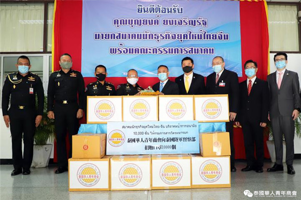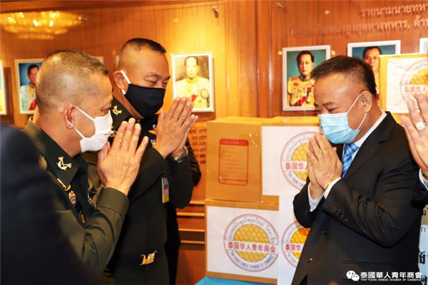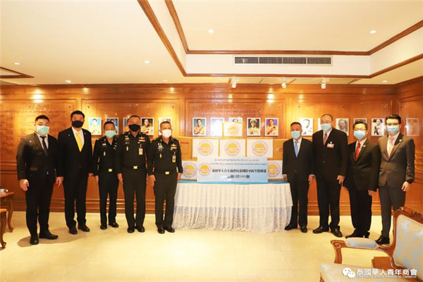 目前,泰国新冠疫情逐步缓解,限制措施逐渐放开,泰国的防疫工作面临新的挑战。泰国中华总商会副主席暨各行业公会联谊会执行主任、泰国华人青年商会会长李桂雄,泰国华人青年商会执行会长李嘉淳等,于2020年5月22日上午,代表青年商会分别向泰国御林军部、泰国陆军督察部、泰国陆军防空指挥部共计捐赠40000个医用口罩及酒精湿巾等防疫物资,受到泰国御林军第一师师长颂鹏·莎少恩少将,泰国陆军督察部总指挥瓦察林·苏湾那林少将、副总指挥拉差达·旺阿里上校,泰国陆军防空指挥部总指挥攀罗·芬福中将等的欢迎和会见。 ปัจจุบันสถานการณ์โควิด-19 ในประเทศไทย คลี่คลายอย่างต่อเนื่อง มาตรการป้องกันต่างๆเริ่มผ่อนคลาย นายบุญยงค์ ยงเจริญรัฐ รองประธาน หอการค้าไทย-จีนและนายกสมาคมนักธุรกิจยุคใหม่ไทย-จีน, นายชุน ไพลีนดีเลิศ นายกบริหารและเลขาธิการสมาคมฯ พร้อมด้วยตัวแทนในนามของสมาคมฯได้มอบหน้ากากอนามัย 40,000 ชิ้น ให้กองพลที่ 1 รักษาพระองค์, กรมการสารวัตรทหารบก และหน่วยบัญชาการป้องกันภัยทางอากาศกองทัพบก ได้รับการต้อนรับจาก พลตรี ทรงพล สาดเสาเงิน ผู้บัญชาการกองพลที่ 1 รักษาพระองค์, พลตรี วัชชรินทร์ สุวรรณรินทร์ เจ้ากรมการสารวัตรทหารบก, พันเอก รชต วงษ์อารีย์ รองเจ้ากรมการสารวัตรทหารบก และพลโท พัลลภ เฟื่องฟู ผู้บัญชาการหน่วยบัญชาการป้องกันภัยทางอากาศกองทัพบก อย่างอบอุ่น เมื่อเช้าวันที่ 22 พฤษภาคม 2563 ที่ผ่านมา