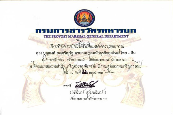 上午10时,青商会一行抵达泰国陆军督察部时,总指挥瓦察林·苏湾那林少将、副总指挥拉差达·旺阿里上校等很高兴的与李会长一行举行了座谈,瓦察林陆军少将说,泰国陆军督察部近期已经采取了多项防控措施,连日来,泰国确诊病例持续下降,不仅归功于政府对公共卫生体系的重视,出台了一系列严防疫情措施,更离不开广大民众的积极配合。军队的职责就是保护国家和人民的安全与稳定,感谢你们对陆军督察部的大力支持,送来了我们正需要的防疫口罩,希望我们双方加强联系和交流,军民团结合作,共同战胜病毒,守护家国。瓦察林总指挥等接领防疫物资,并向李会长等一行颁送感谢信。