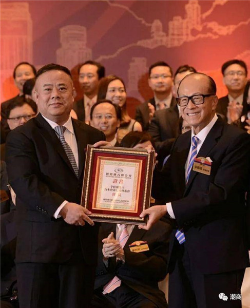 2016年,国际潮青联合会荣誉会长李嘉诚为李桂雄颁发第七届国际潮青联合会会长证书