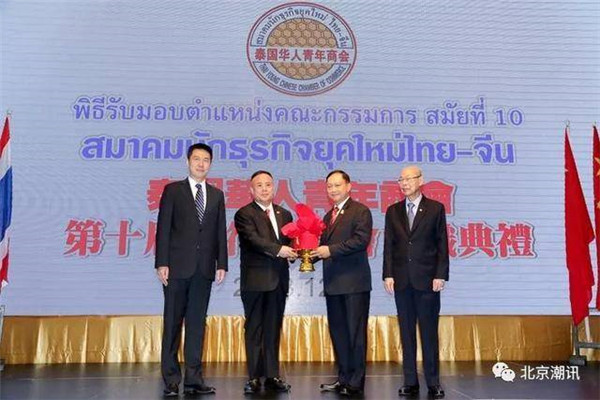 泰国华人青年商会第十届执委会就职典礼,泰国劳工部部长阿仑·盛信缴警上将、中国大使馆杨欣代办、泰国中华总商会主席陈振治博士共同主持授印信仪式,向李桂雄授印信