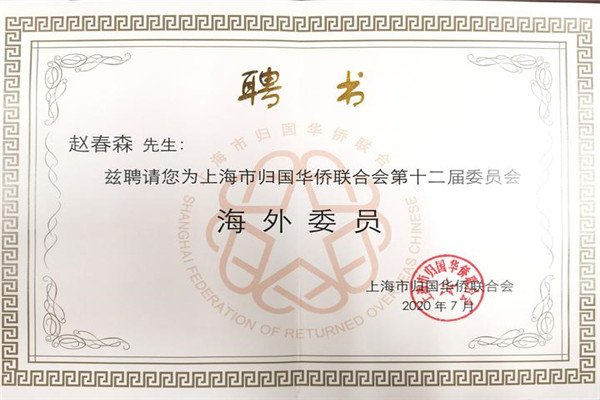 中国侨联委员、泰国中华总商会副主席暨各行业公会执行主任、国际潮青联合会会长、泰国华人青年商会会长李桂雄,中国侨联委员、中国全国青联常委、泰国华人青年商会副会长、泰中文化交流中心主任赵春森荣任上海市侨联海外委员,赵春森出席会议。