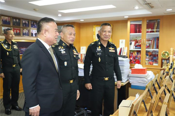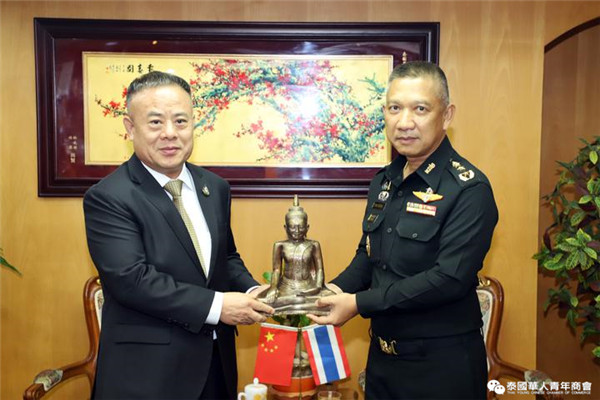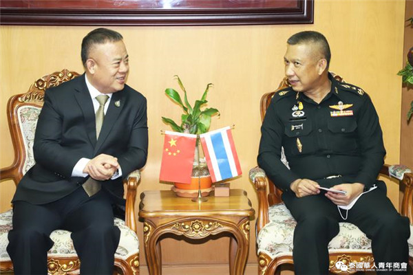 2020年7月20日,泰国陆军司令部第二军司令员汤约•吉滴讪中将在泰国陆军司令部皇家项目与安全协调中心副主任塔瓦猜•川颂汶中将等的陪同下,莅访泰国华人青年商会,受到泰国中华总商会副主席暨各行业公会执行主任、泰国华人青年商会会长李桂雄,泰国华人青年商会执行会长李嘉淳等的热烈欢迎,进行了友好交流与座谈,并代表青年商会向泰国陆军第二军区捐赠20000个医用口罩、酒精洗手液等防疫物资。