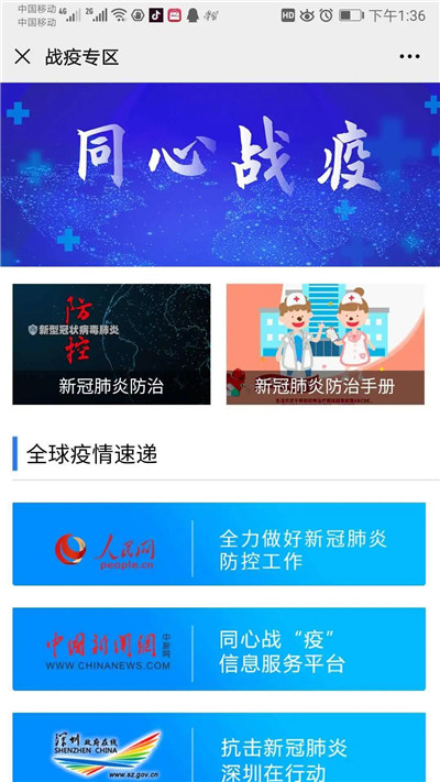 目前,新冠肺炎疫情仍在全球蔓延,疫情防控将成为一种常态。改版后的“深圳侨务”设置了“战疫专区”,内设“新冠肺炎防治”、“新冠肺炎防治手册”、“全球疫情速递”等子栏目,直接指向国内权威媒体和相关政府部门的官网或公号页,分享国内外最新疫情动态和数据,以及深圳抗疫经验。