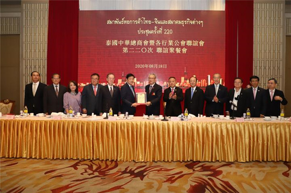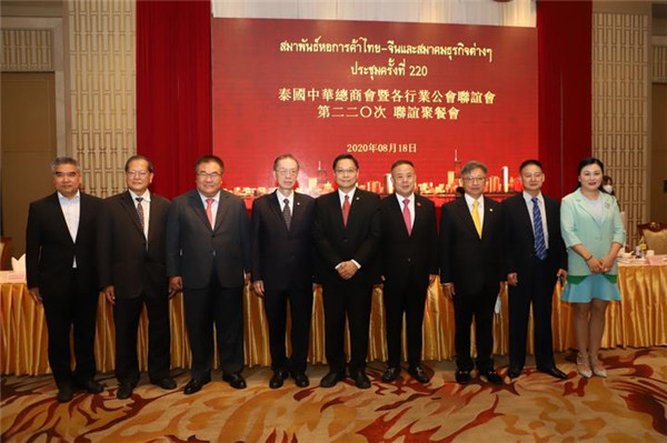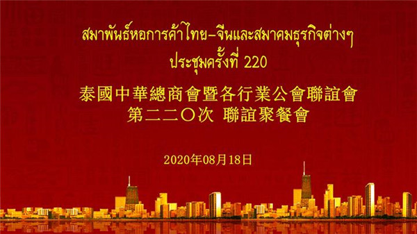 泰國中華總商會暨各行業公會聯誼會第220次聚餐聯誼會,於2020年8月18日(星期二)上午11時,在泰國中華總商會大厦九樓光華堂隆重顺利舉行。此次作東單位有:泰國中華總商會、泰華進出口商會、泰國廣肇商會、泰京聯華藥業公會、泰國橡膠協會、泰國北京總商會、泰國南安商會。