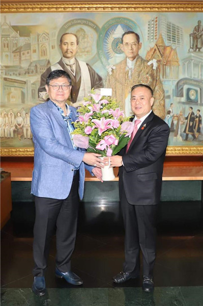 日前(2020年8月8日),泰国新一届政府内阁上任,泰国中华总商会副主席暨各行业公会执行主任、国际潮青联合会会长、泰国华人青年商会会长李桂雄向阿奈•劳探玛塔博士(刘阿奈,ดร.อเนก เหล่าธรรมทัศน์ ,Anek Laothammatas)就任泰国高等教育、科研与创新部部长(รมว.การอุดมศึกษา วิทยาศาสตร์ วิจัยและนวัตกรรม)敬献鲜花表示热烈祝贺!恭祝刘部长政躬康泰、工作顺利,为国为民、为泰中友谊与友好合作做出贡献!。
