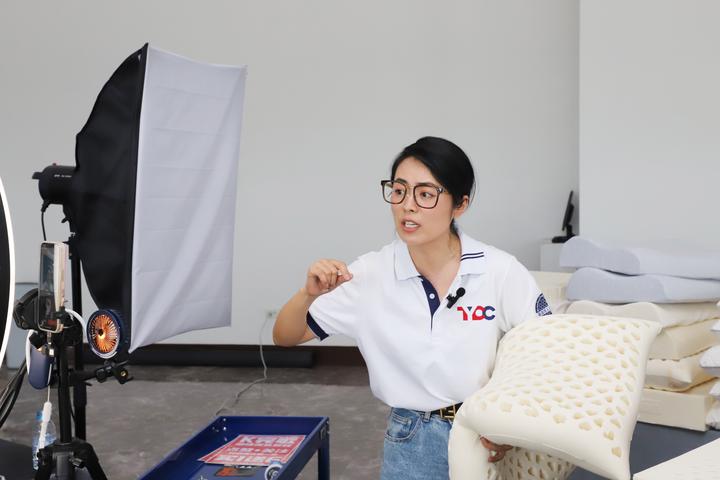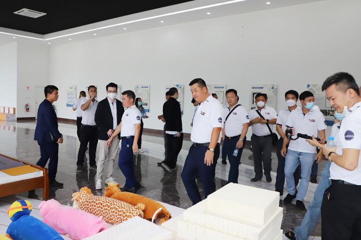 考察团到达后,姚鸿春常务副会长热情地接待了考察团一行,并带领考察团一行通过文化墙照片等的展示,详细介绍了伟浩蒙乳胶的品牌发展历史及目前的运营情况,通过参观工厂和制作乳胶制品的步骤和流程,让大家了解了乳胶制品生产制作的复杂性及其不同产品功能的特性。同时,考察团一行现场还参与了时下最具发展潜力的电商直播,让大家亲身互动其中。