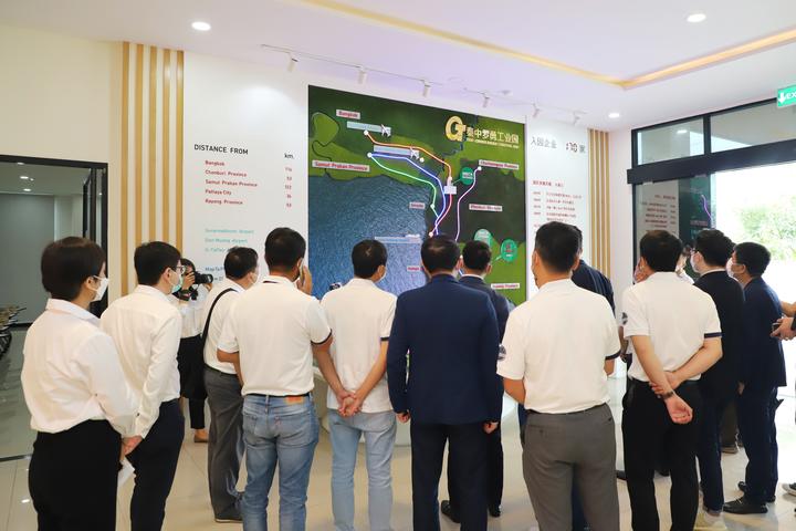 泰中罗勇工业园赵斌总裁首先对考察团到来表示热烈欢迎,并向考察团介绍了园区设立初衷、未来规划、交通地理位置、人事架构以及园区发展历史照片墙等。