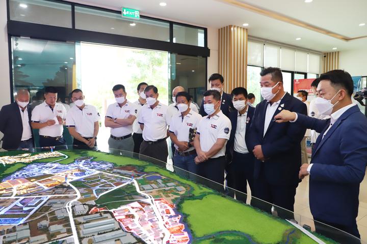 8月6日早10点整,考察团一行前往行程第四站:具有泰国工业唐人街之称的——泰中罗勇工业园进行参观访问。受到泰中罗勇工业园赵斌总裁、童波副总裁、岳群总裁助理、安美德集团中国市场徐根罗副总裁、青商会会员企业—大拓律师事务所EEC分所王朝睿主任、中保华安集团泰国分公司王发东总经理等的热情接待与欢迎。