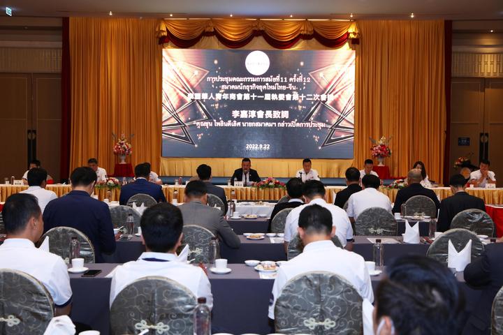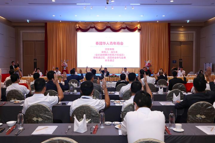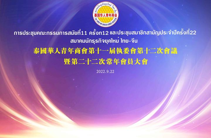 泰国华人青年商会第十一届执委会第十二次会议暨第二十二次常年会员大会于2022年9月22日,在泰国中华总商会大厦光华堂成功召开。大会特别恭请永远名誉会长李桂雄担任大会主席。泰国华人青年商会第十一届执行委员会会长李嘉淳,常务副会长林玮、刘龙、陈玉宝、姚鸿春、陈平、陈汉国、史大佗,副会长郑树丰、李大成、李宛情、周桂扬、廖以良、刘吉辉、陈金敦、陈耀盛、廖晓文、林晓东、郑少伟、许少玉、李先标、杨灿宜、肖文彬、刘少毅等百余位常执委及会员出席。