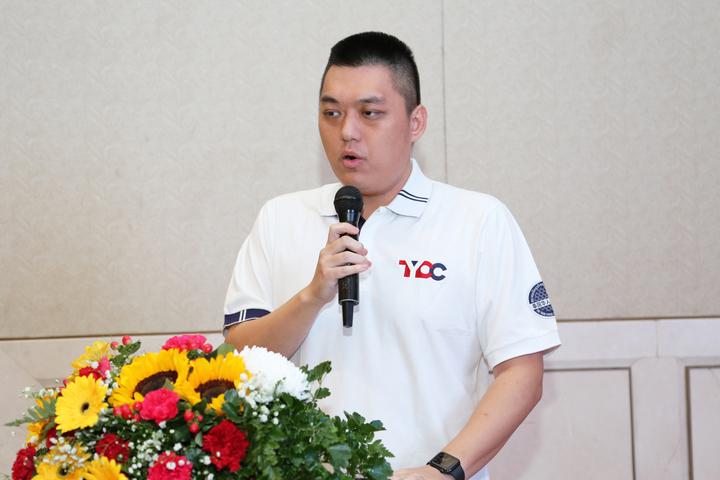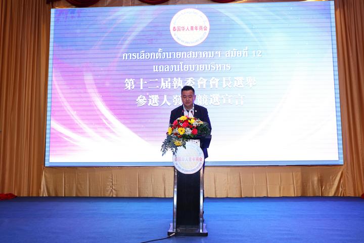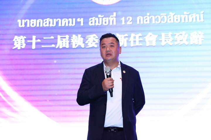 泰国华人青年商会第十二届执委会新任会长李嘉淳发表致谢词