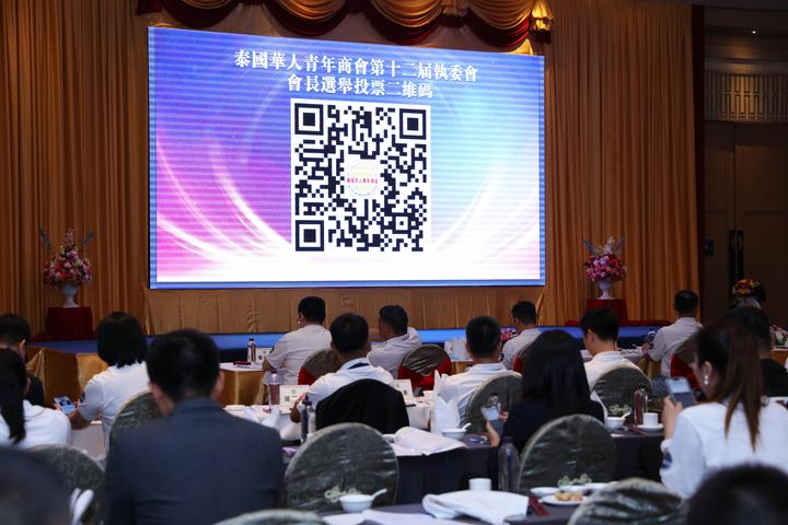 竞选宣言后,选举仪式进入现场参会成员二维码投票环节,大家纷纷为泰国华人青年商会第十二届执委会会长的产生投上自己神圣的一票!